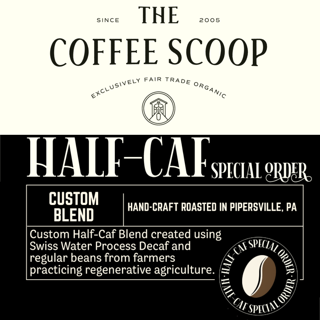 Half-Caf Your Way! Customize your order: select Dark Roast or Medium Roast Decaf then select a Light, Medium, or Dark Regular single origin or blend.