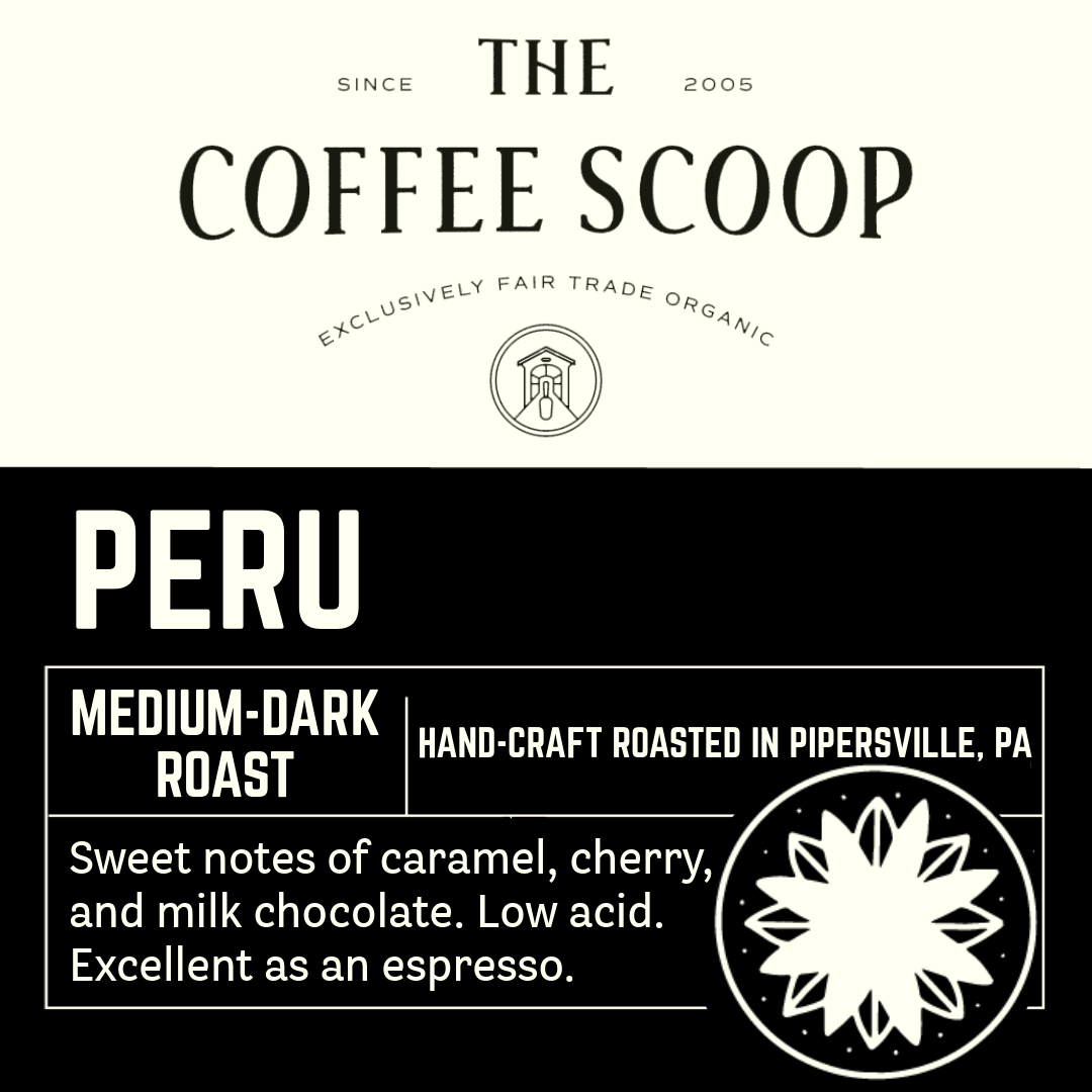 Notes: caramel, cherry, and milk chocolate Certification: Fair Trade | Organic Region: San Martín, Peru Altitude: 1,100 - 1,760 meters Varietals: Castillo, Pache, Typica